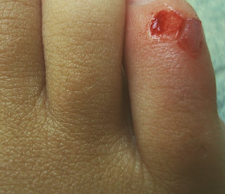 hoje o meu dedo ficou neste estado quando eu dei com o pé não sei muito bem onde.